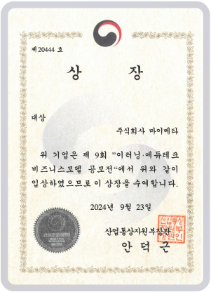 • 2024.9 Grand Prize at the E-Learning & EdTech Business Model Contest by the Ministry of Trade, Industry and Energy